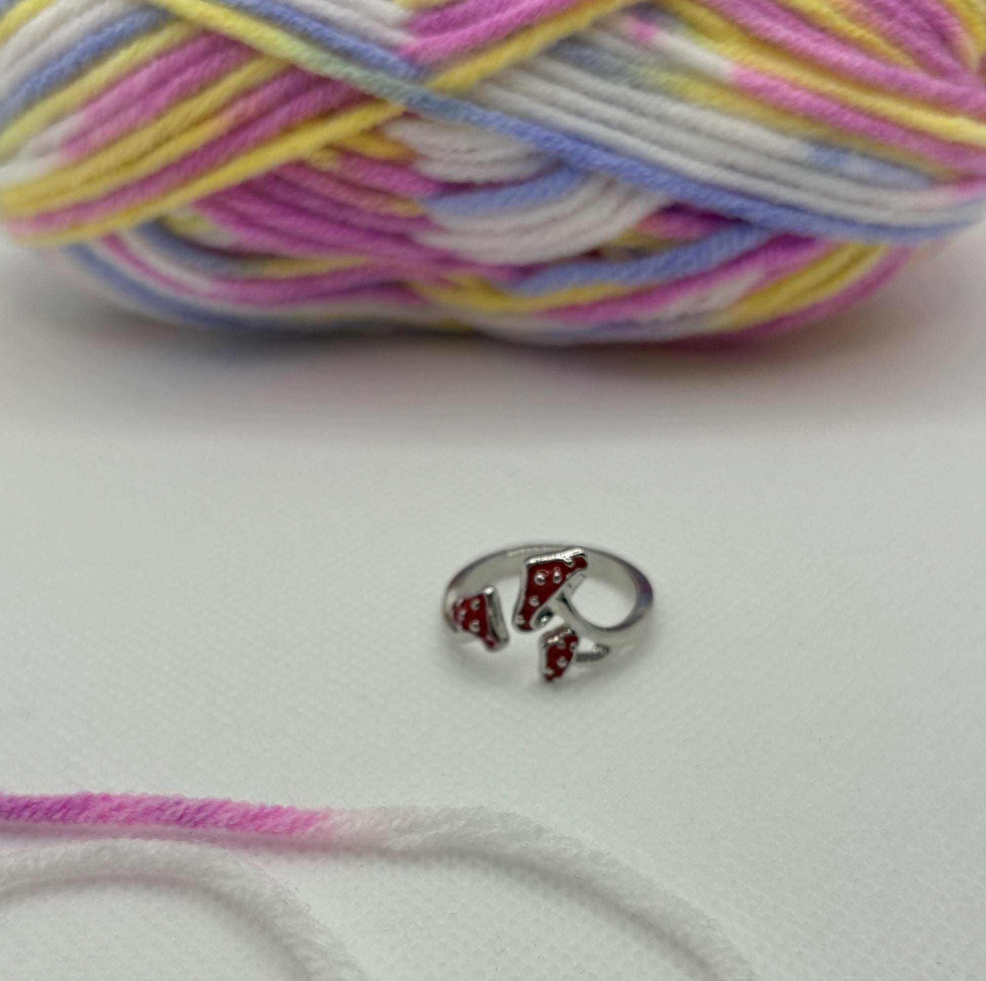 Adjustable Yarn Crochet Tension Ring - Mushroom knitting or crochet loop, fibre arts, wool thread guide, knitter gift, crafting
