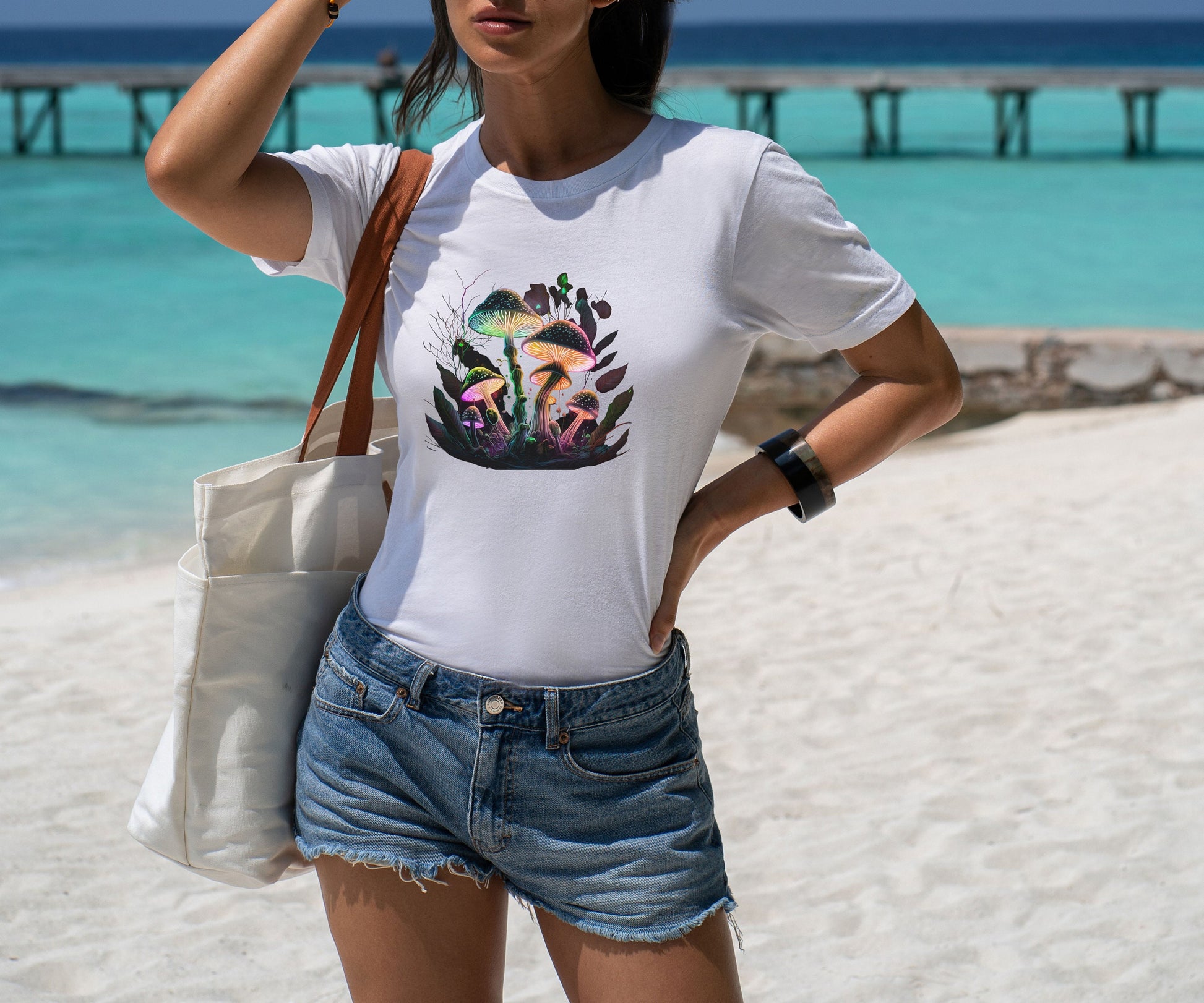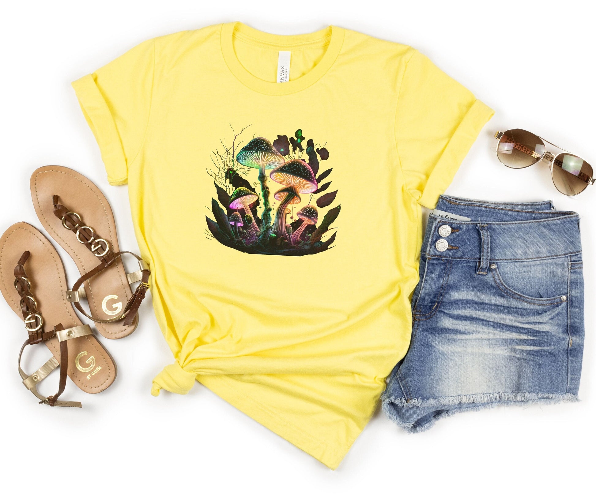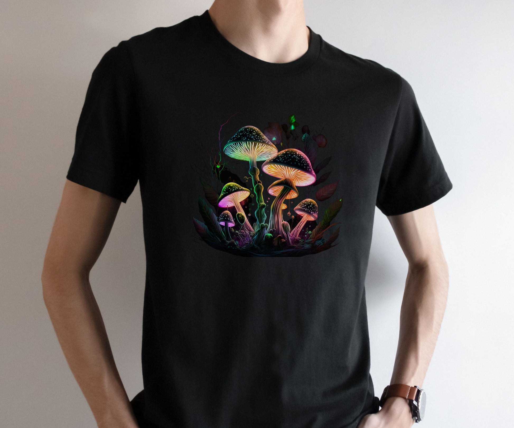 Dark/Light Academia or Botanical/Nature gift Tee Shirt or clothing. Step into the pyschedelic world of enchanting nostalgia with our shirt. Embrace the charm of mushrooms, shadows and toadstools, creating a timeless masterpiece for your wardrobe. Embrace nature's allure!