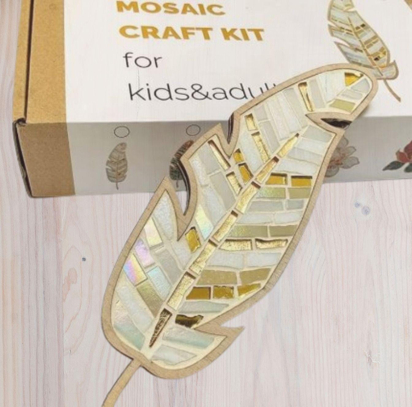 🌟 Unwind, Create, & Shine - Embrace your inner artist and elevate your space with this beautiful Gold & White Feather DIY Mosaic Kit. Order now and start crafting your very own masterpiece!