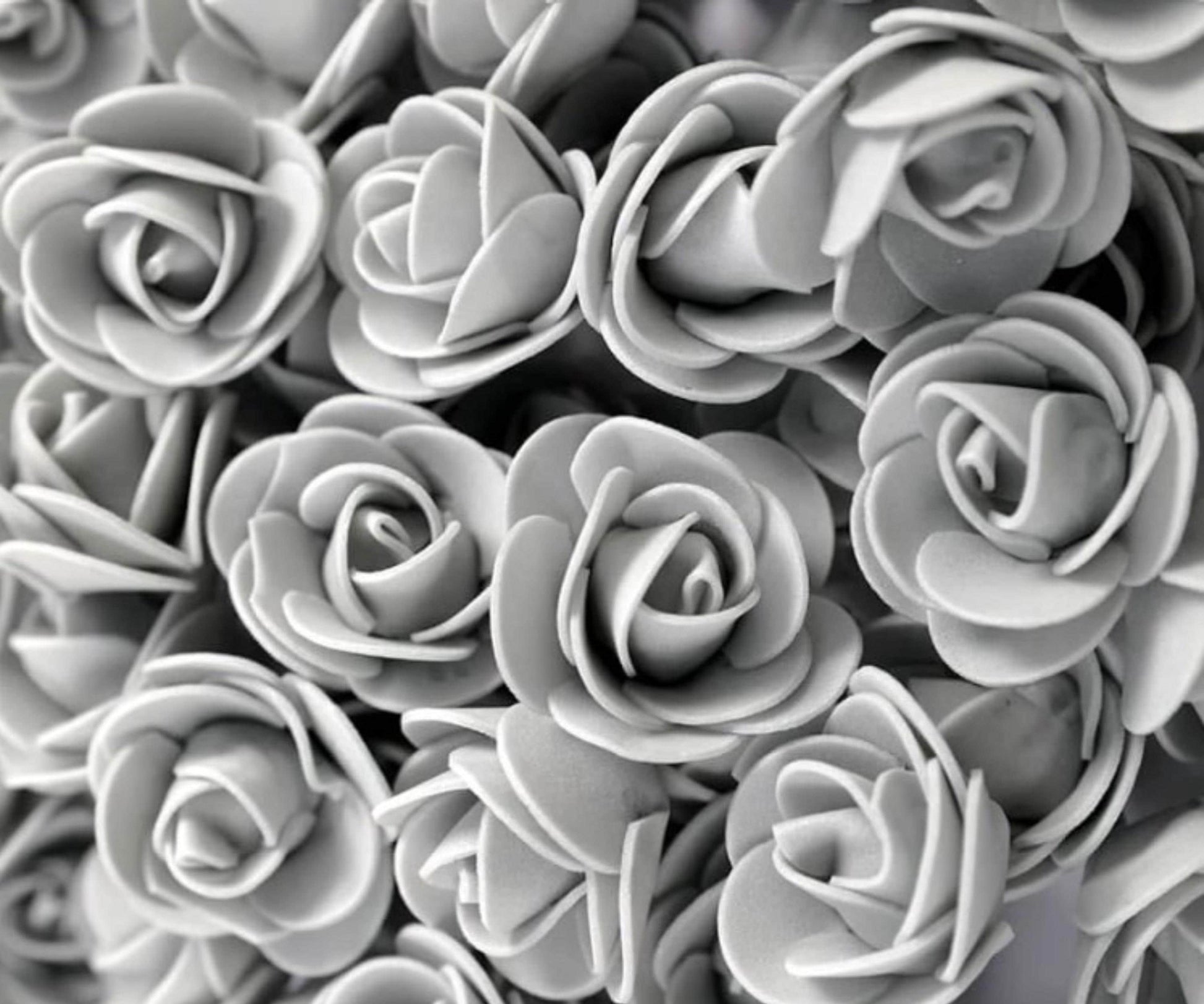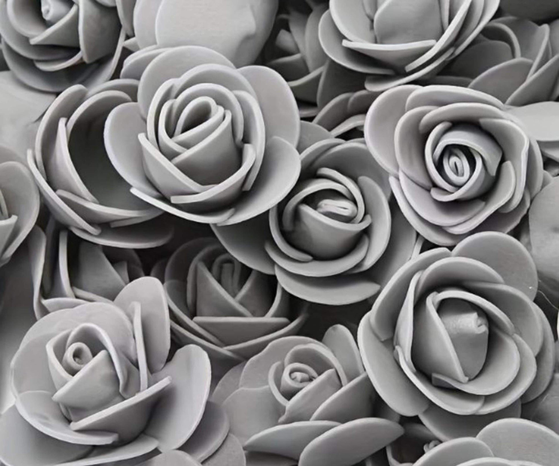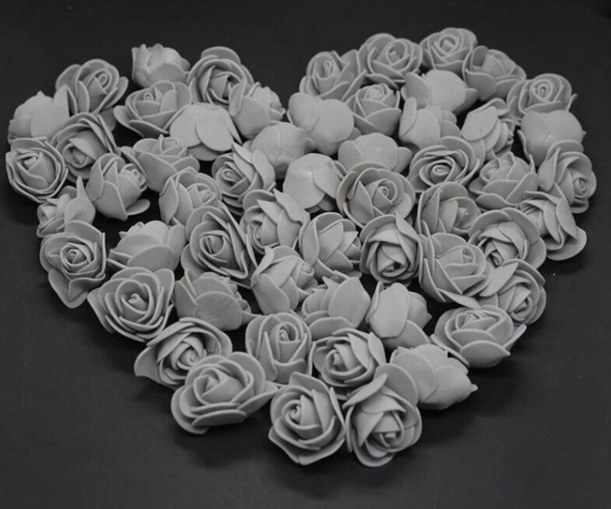 Grey artificial Rose foam flower heads - 10/30/50/100pcs, flower arranging, decoration for Valentine's, Wedding, Birthday or Bridal shower