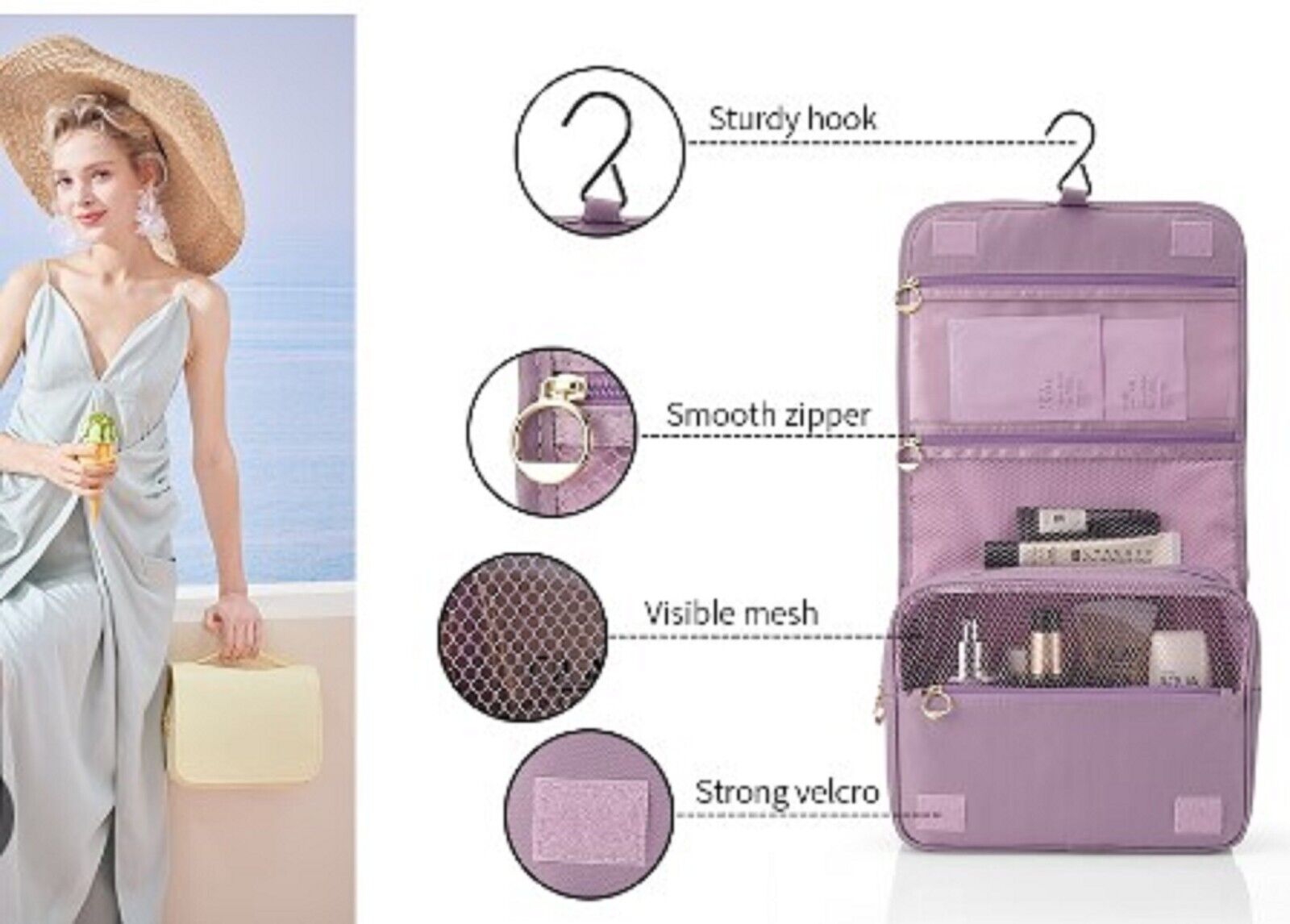 - Spacious: the bag is 25 x 18.5 cm, which means it is large enough to hold sun protection spray, your makeup, face mask and cosmetic items. The ideal companion for your travel, business trip etc. Now you can organise your products in a lovely bag. Easy to find and easy to carry.