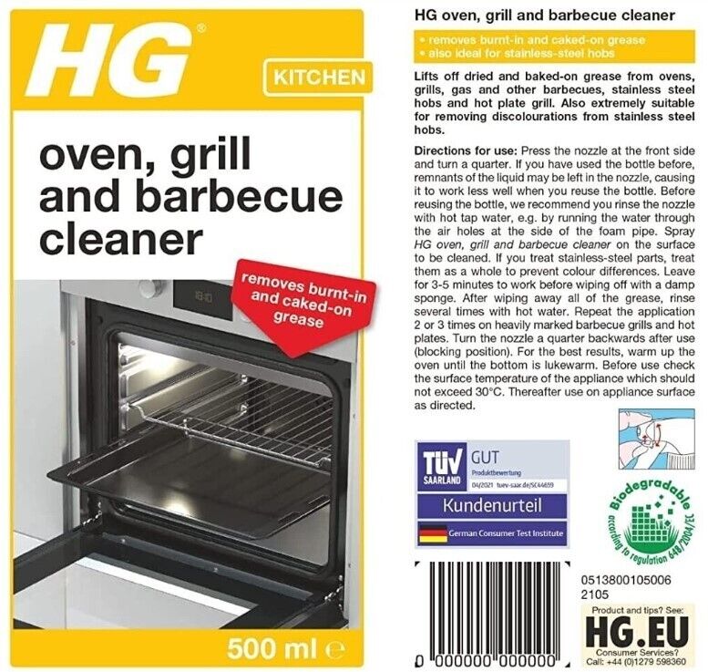 HG Grill, BBQ & Oven Cleaner Spray 500ml pk 2 of new-label smudge, ship in 24hrs