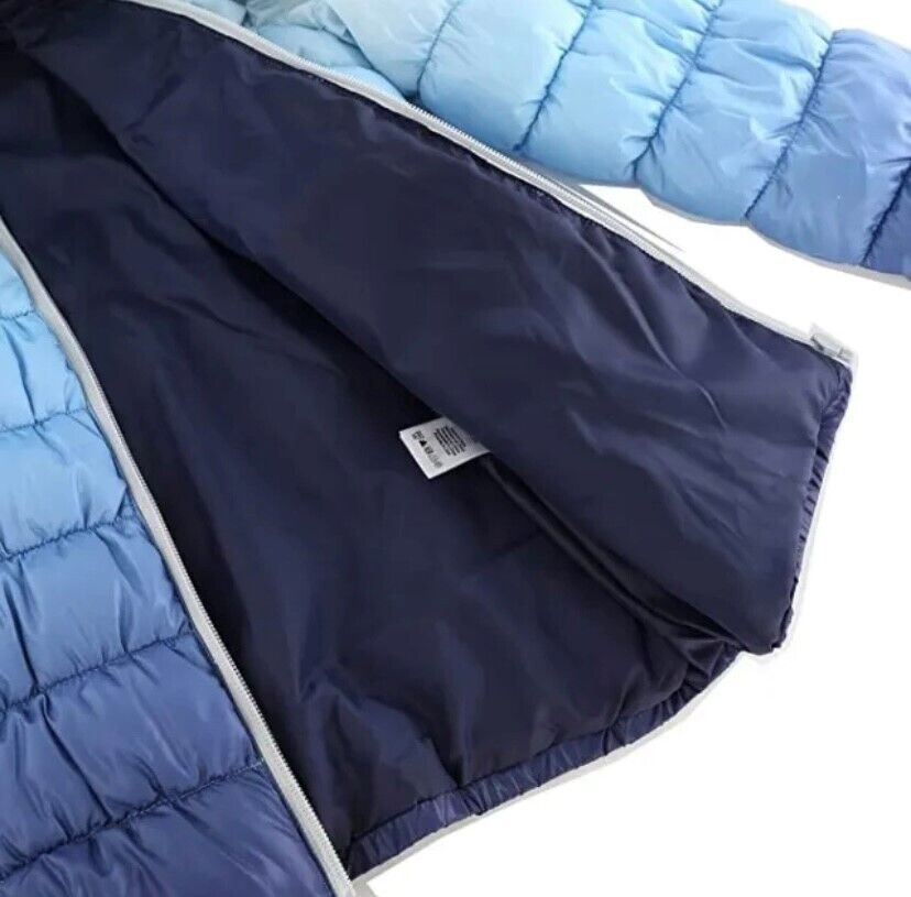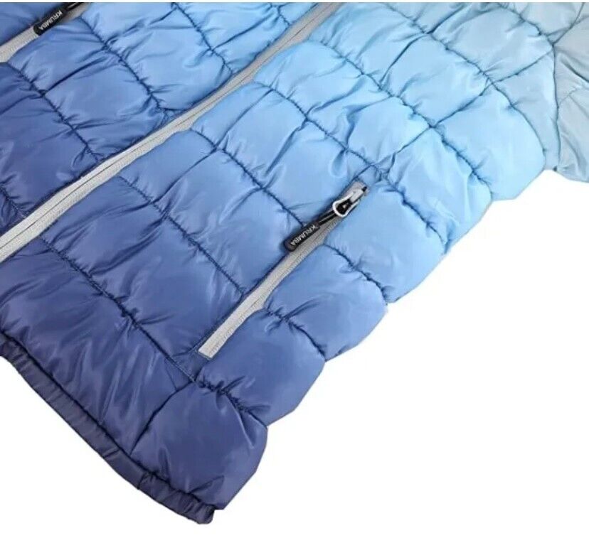 Mens Hooded Hiking Puffer jacket Zip Front Gradient Water Resistant - Blue - 2XL