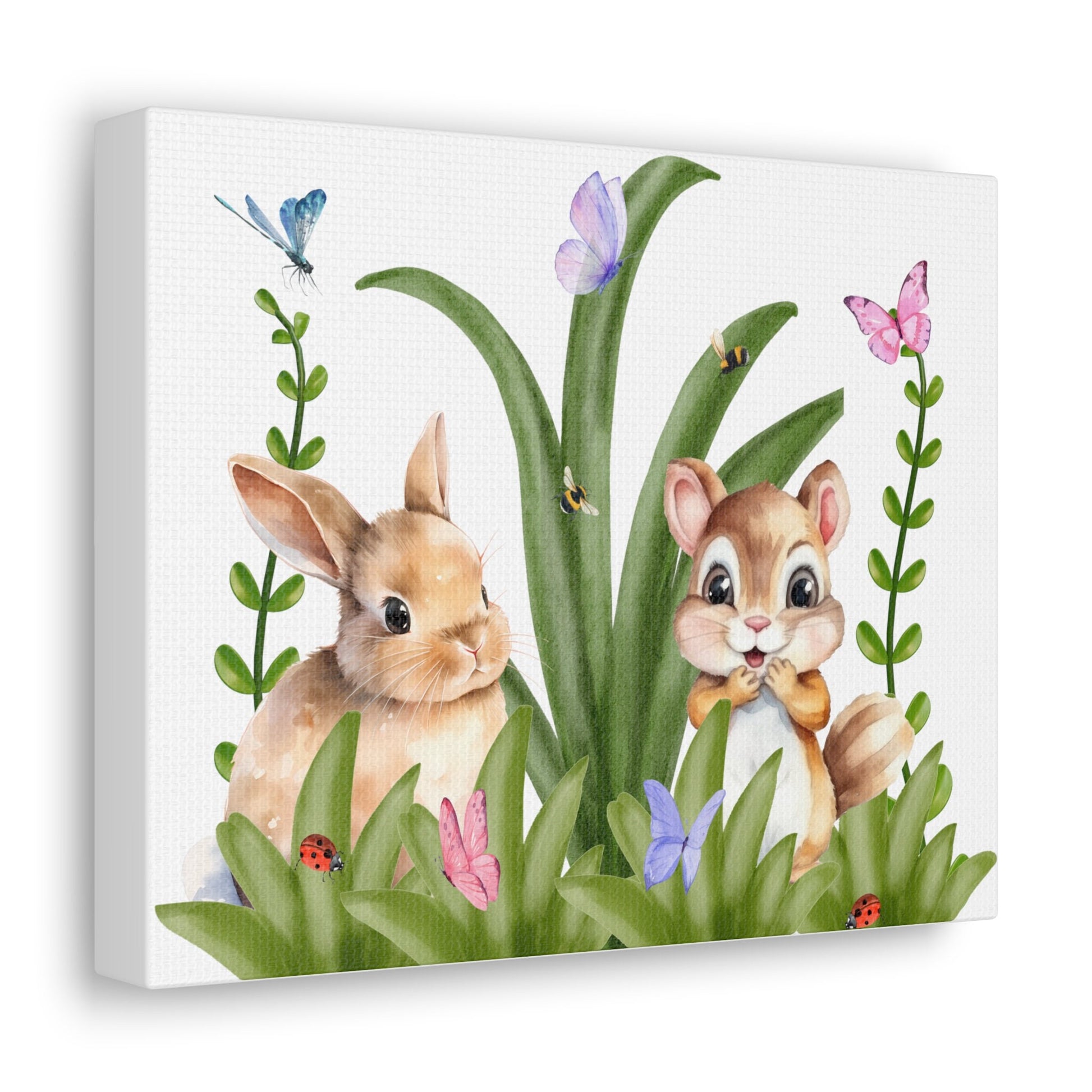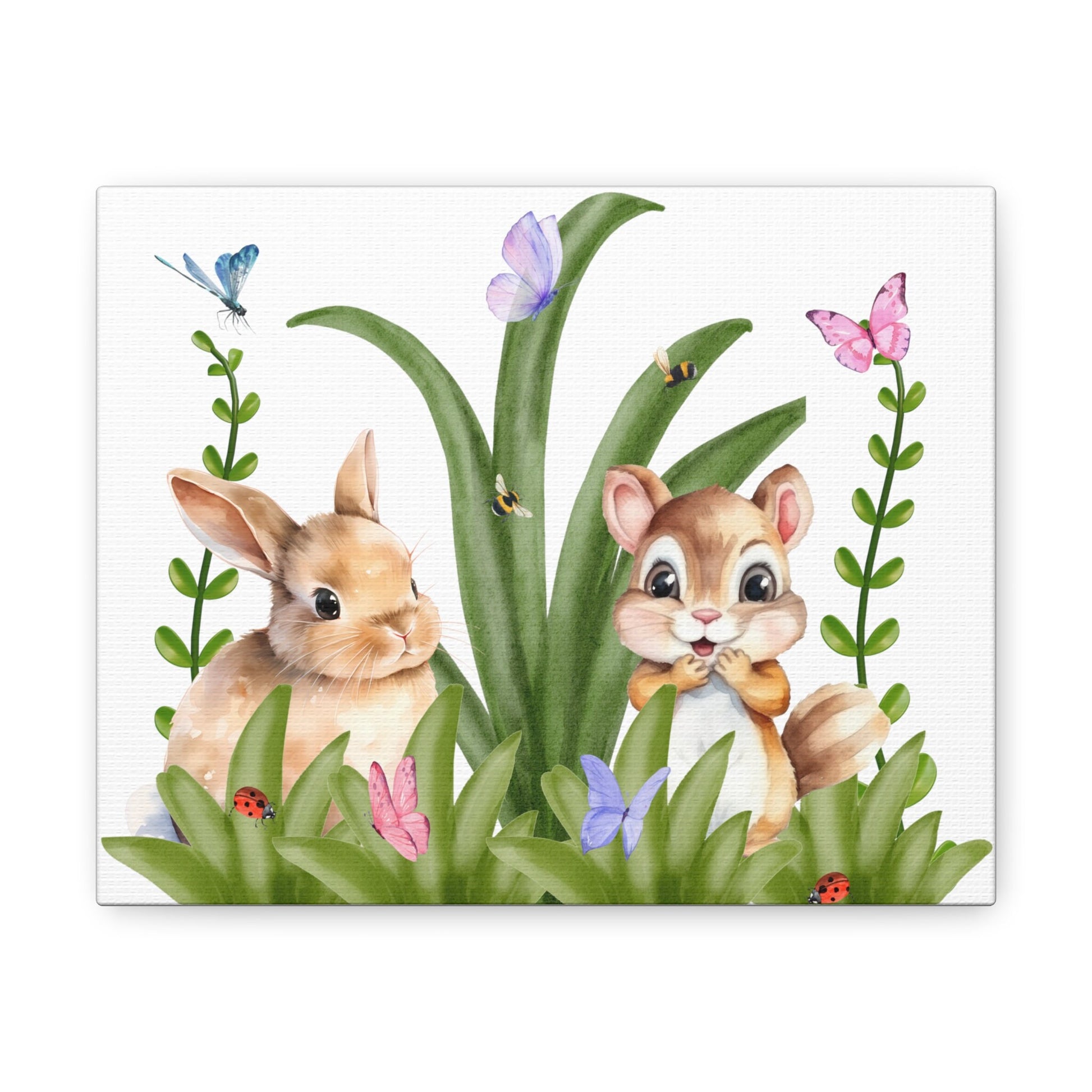 New baby room decor, Canvas Gallery Wraps, Sweet bunny & squirrel picture kids bedroom