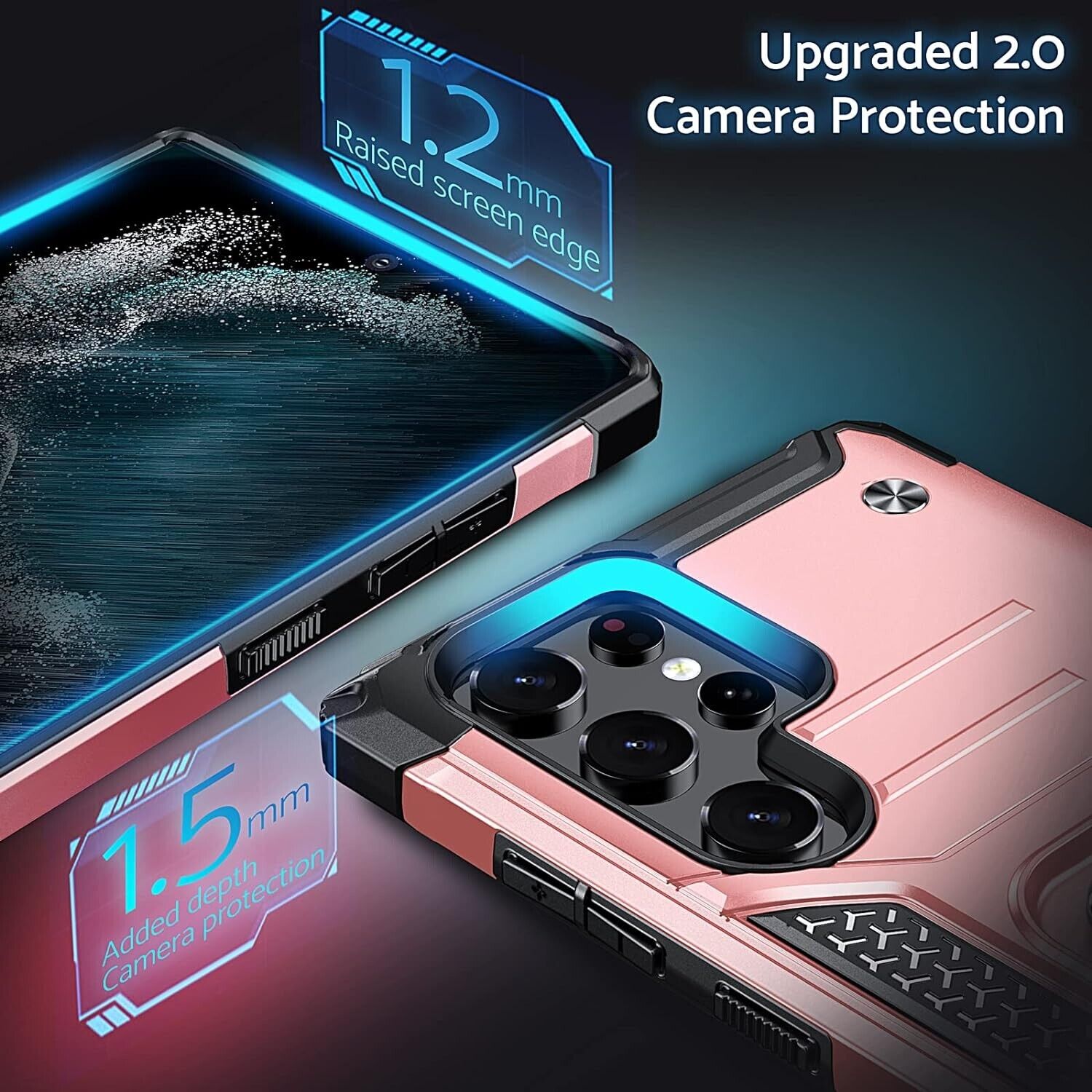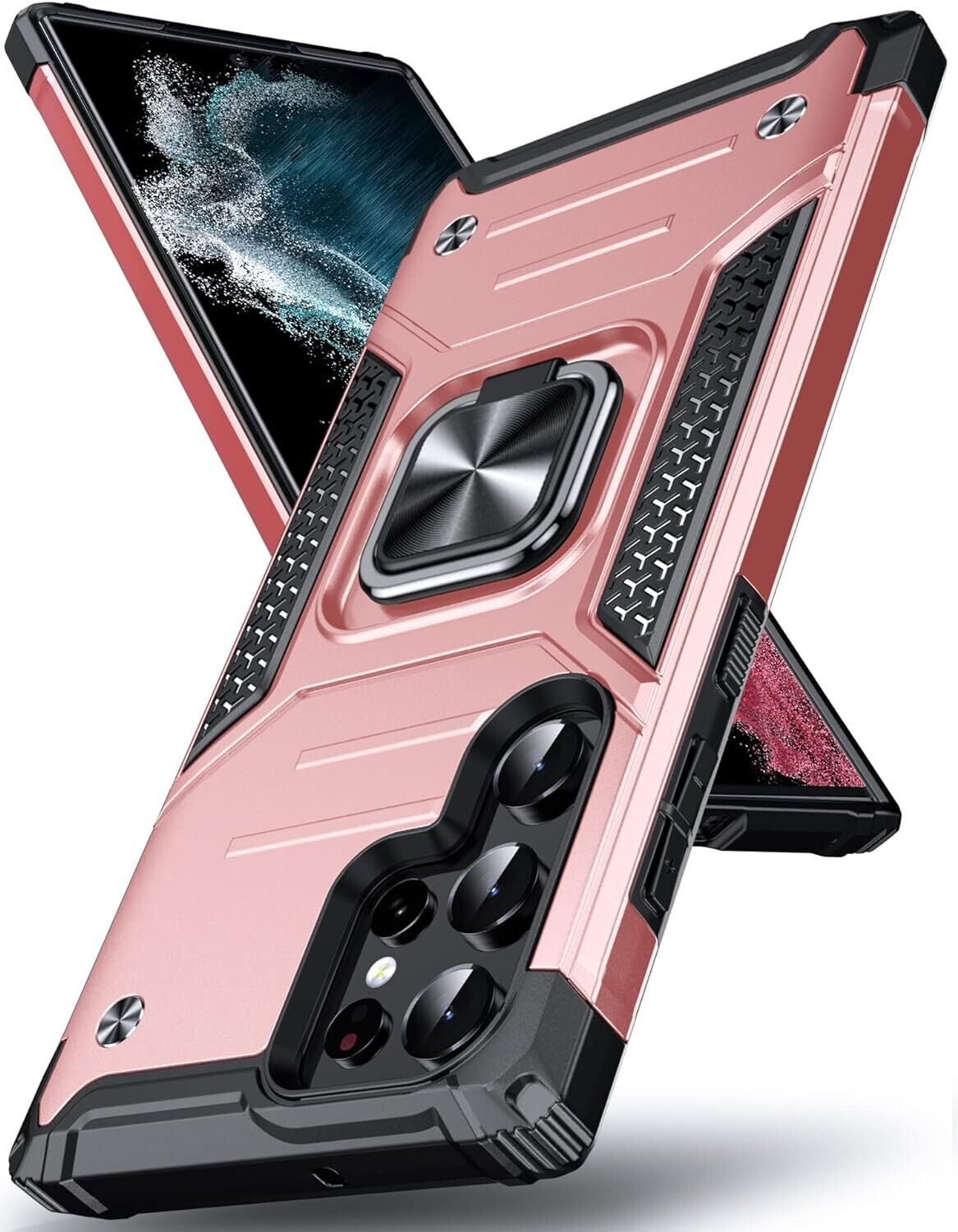 Phone case Samsung S22 Ultra with ring -Armour case protection shell - Rose Gold