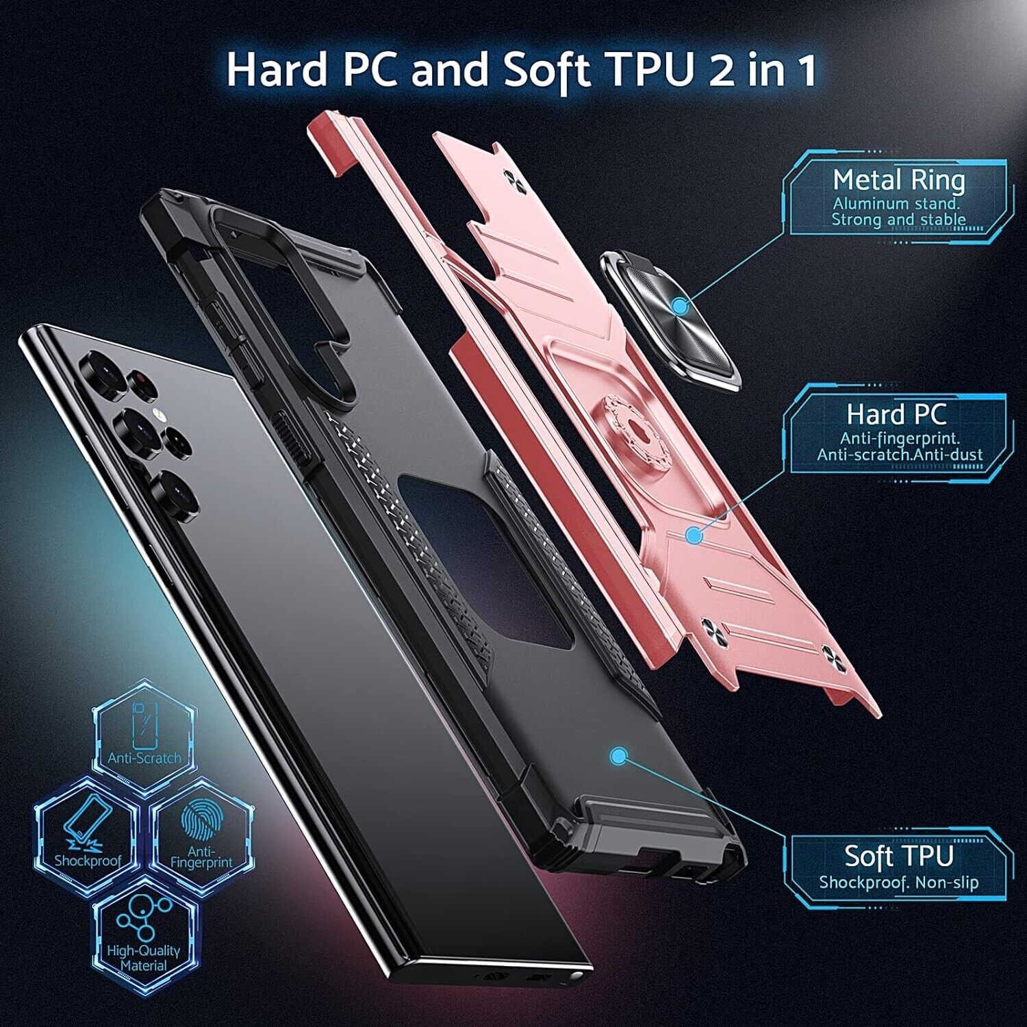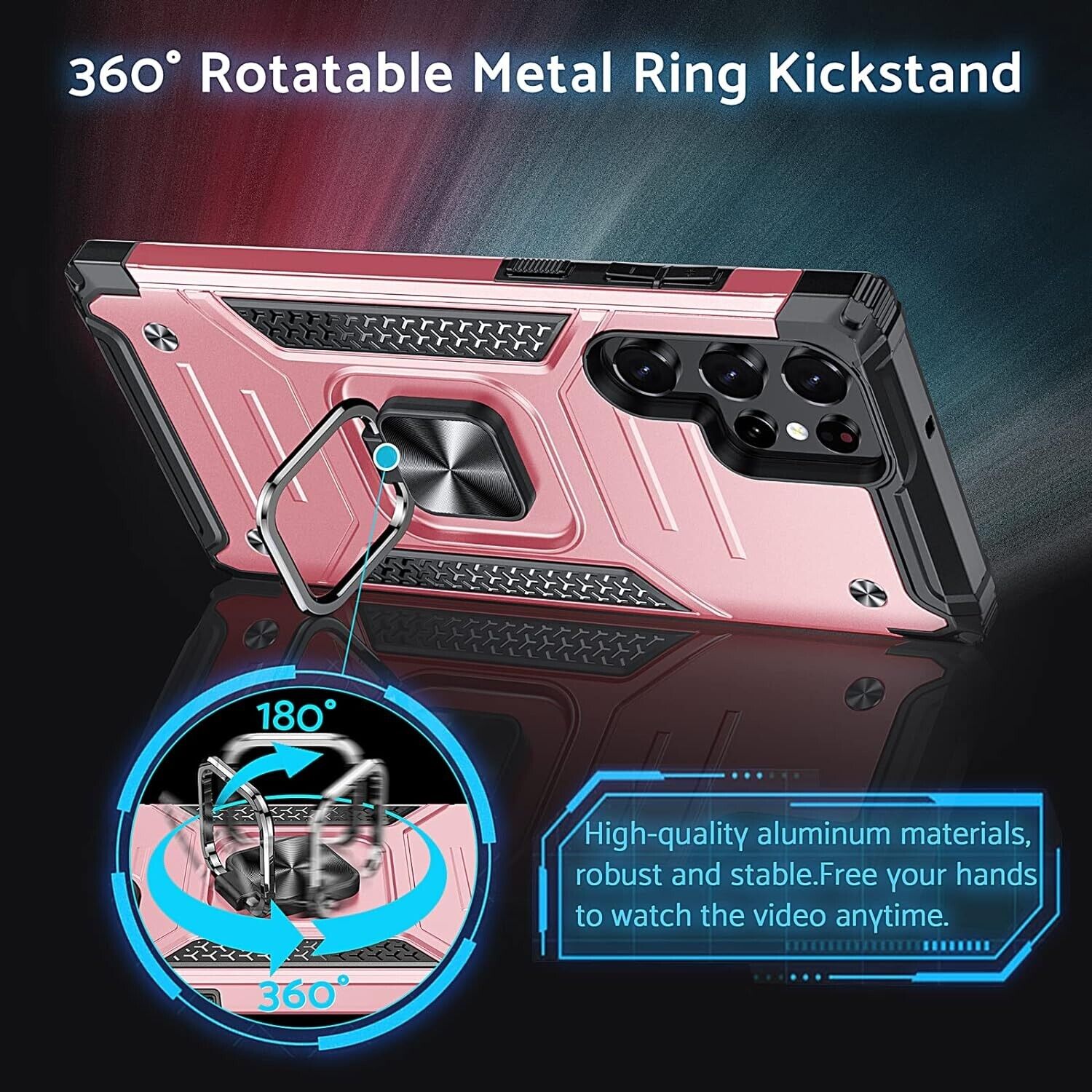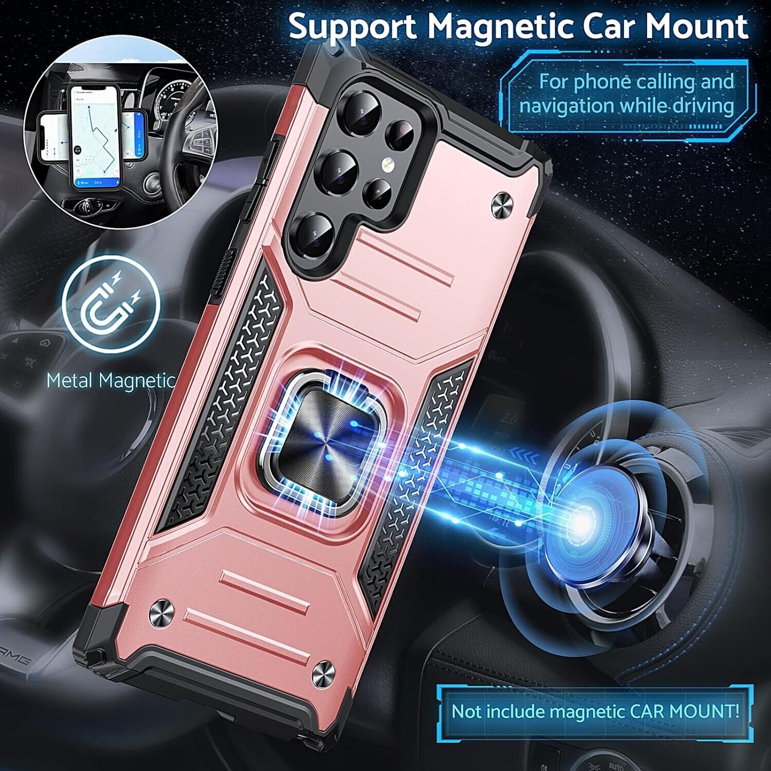 Supports Magnetic Car Mount(mount not included). Phone case Samsung s22 ultra with ring - Armour case protection shell with enhanced metal ring kickstand