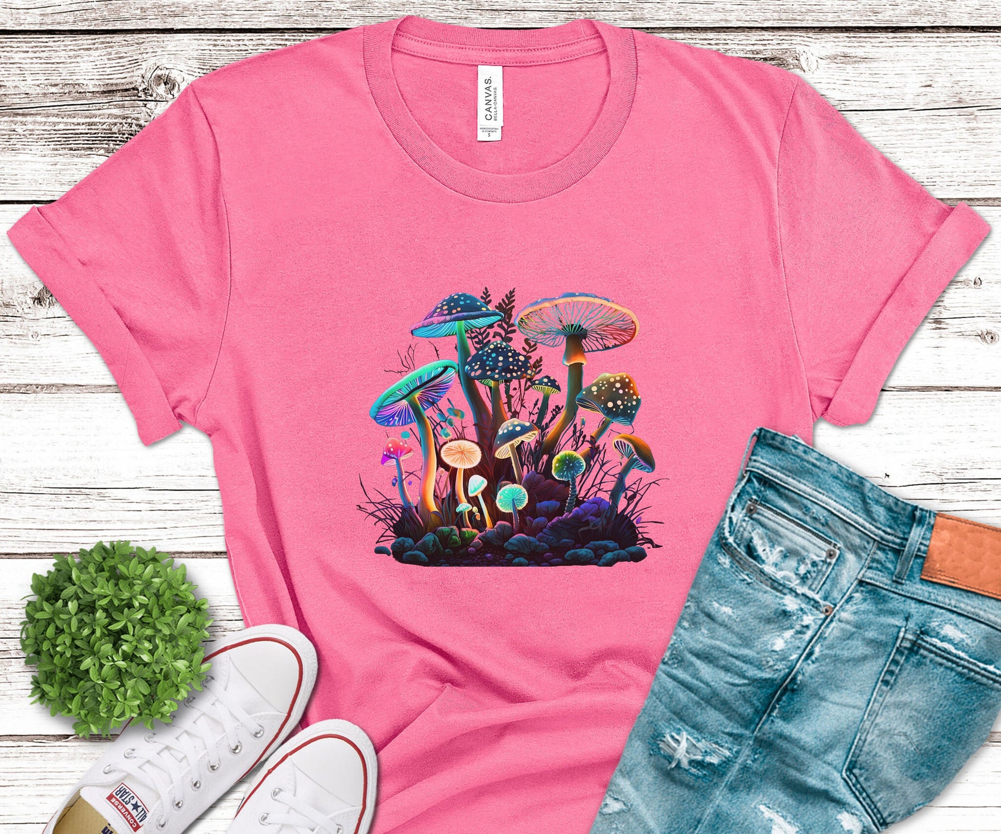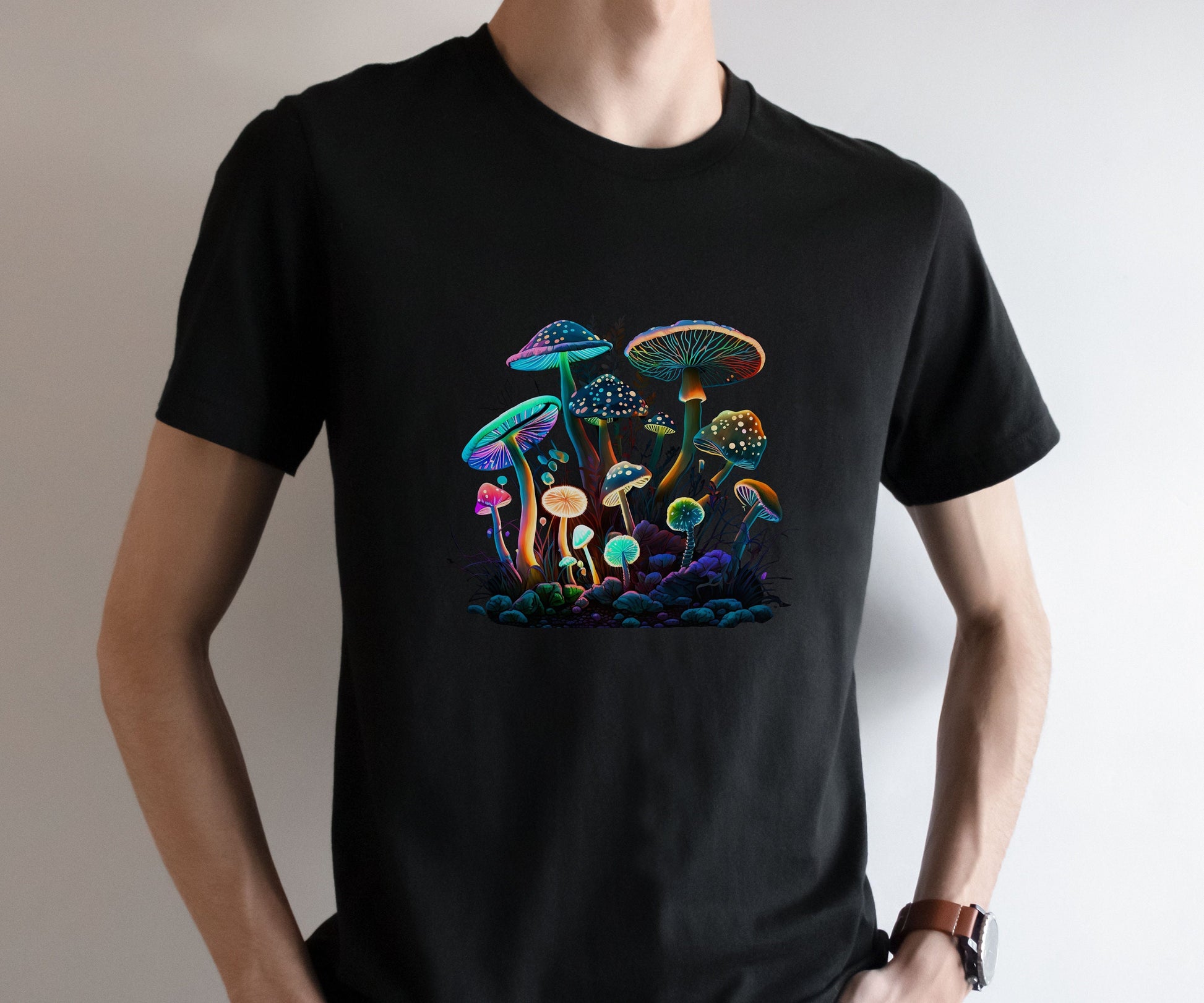 Dark/Light Academia or Botanical/Nature gift Tee Shirt or clothing. Step into the pyschedelic world of enchanting nostalgia with our shirt. Embrace the charm of mushrooms, shadows and toadstools, creating a timeless masterpiece for your wardrobe. Embrace nature's allure!